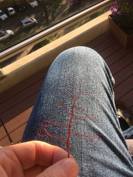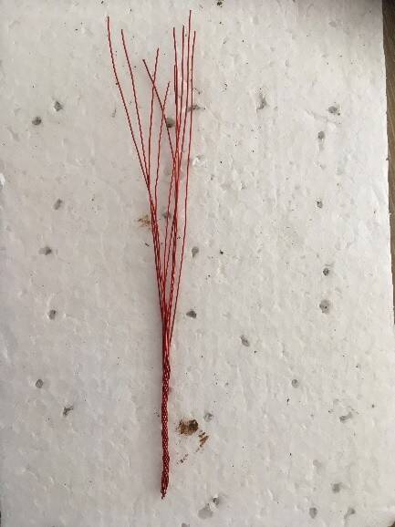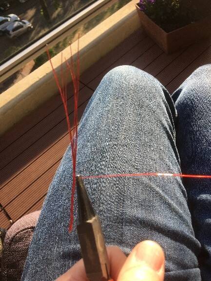 8. Als de uiteinden lang zijn dan vouw dan de draad weer terug in een lus naar de tak en maak weer een kleinere lus welke ook open wordt geknipt.